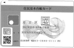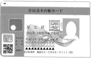 足立区で発行している住民基本台帳カードの見本です。見本のためICチップ部分に穴があいています。